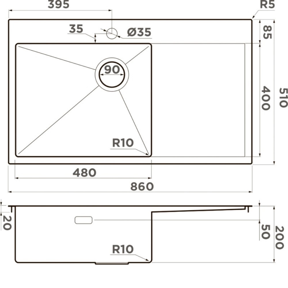 Мойка кухонная Omoikiri из коллекции Akisame 86-GB-L Side имеет размеры 860х510 мм., изготовлена из нержавеющей стали. Форма — прямоугольная, одна чаша с отверстием для смесителя. Сифон в комплекте. Ширина чаши 48. Врезной монтаж. Имеется крыло.