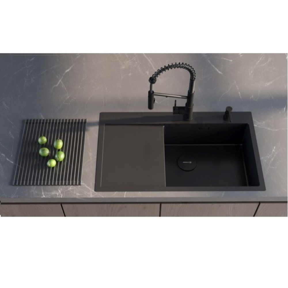 Мойка кухонная Omoikiri из коллекции Akisame 86-LG-R Side имеет размеры 860х510 мм., изготовлена из нержавеющей стали. Форма — прямоугольная, одна чаша с отверстием для смесителя. Сифон в комплекте. Ширина чаши 48. Врезной монтаж. Имеется крыло.