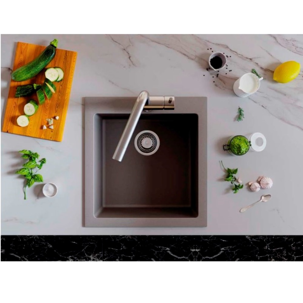 Мойка кухонная Omoikiri из коллекции Bosen 47-WH имеет размеры 470х500 мм., изготовлена из искусственного гранита. Форма — прямоугольная, одна чаша без отверстия для смесителя. Сифон в комплекте. Ширина чаши 40. Подстольный монтаж.