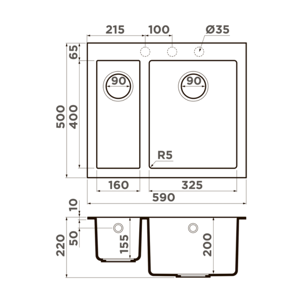 Мойка кухонная Omoikiri из коллекции Bosen 59-2A-GR имеет размеры 590х500 мм., изготовлена из искусственной керамики. Форма — прямоугольная, одна чаша с отверстием для смесителя. Сифон в комплекте. Ширина чаши 32,5. Врезной монтаж. Имеется дополнительная чаша.