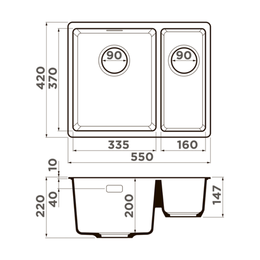 Мойка кухонная Omoikiri из коллекции Kata 52-2-U-SA имеет размеры 550х420 мм., изготовлена из искусственного гранита. Форма — прямоугольная, одна чаша без отверстия для смесителя. Сифон в комплекте. Ширина чаши 33,5. Подстольный монтаж
