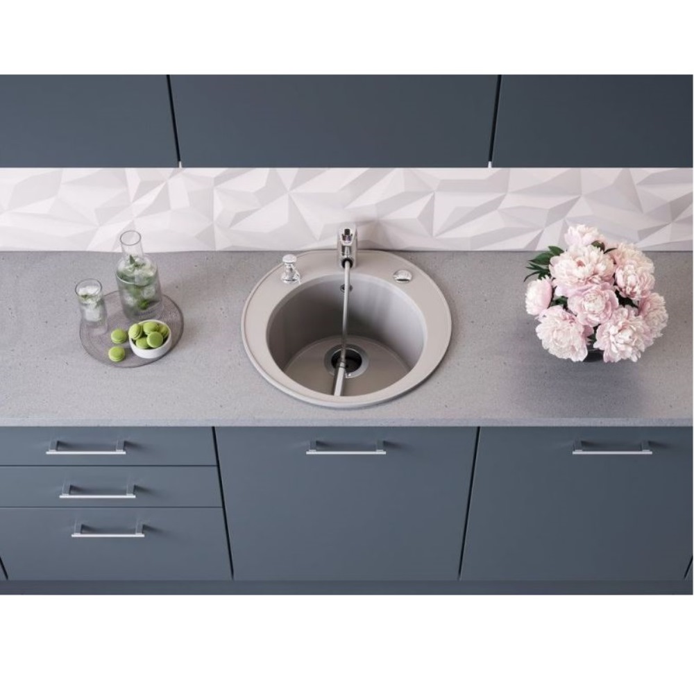 Мойка кухонная Omoikiri из коллекции Miya 50R-EV имеет размеры 505х490 мм., изготовлена из искусственного гранита. Форма — круглая, одна чаша без отверстия для смесителя. Сифон в комплекте. Ширина чаши 37,5. Врезной монтаж.