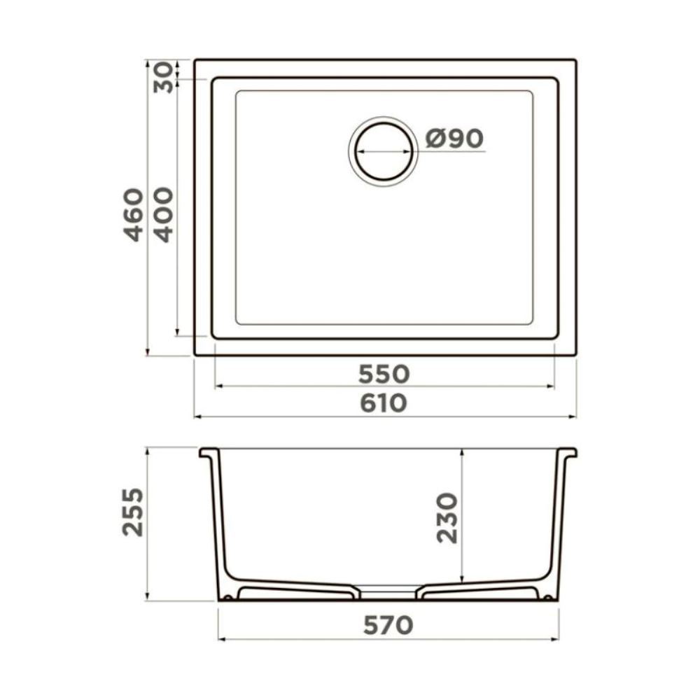 Мойка кухонная Omoikiri из коллекции Okinoshima 61-U/I-CC имеет размеры 610х460 мм., изготовлена из искусственной керамики. Форма — прямоугольная, одна чаша без отверстия для смесителя. Сифон в комплекте. Ширина чаши 55. Подстольный и врезной монтаж.