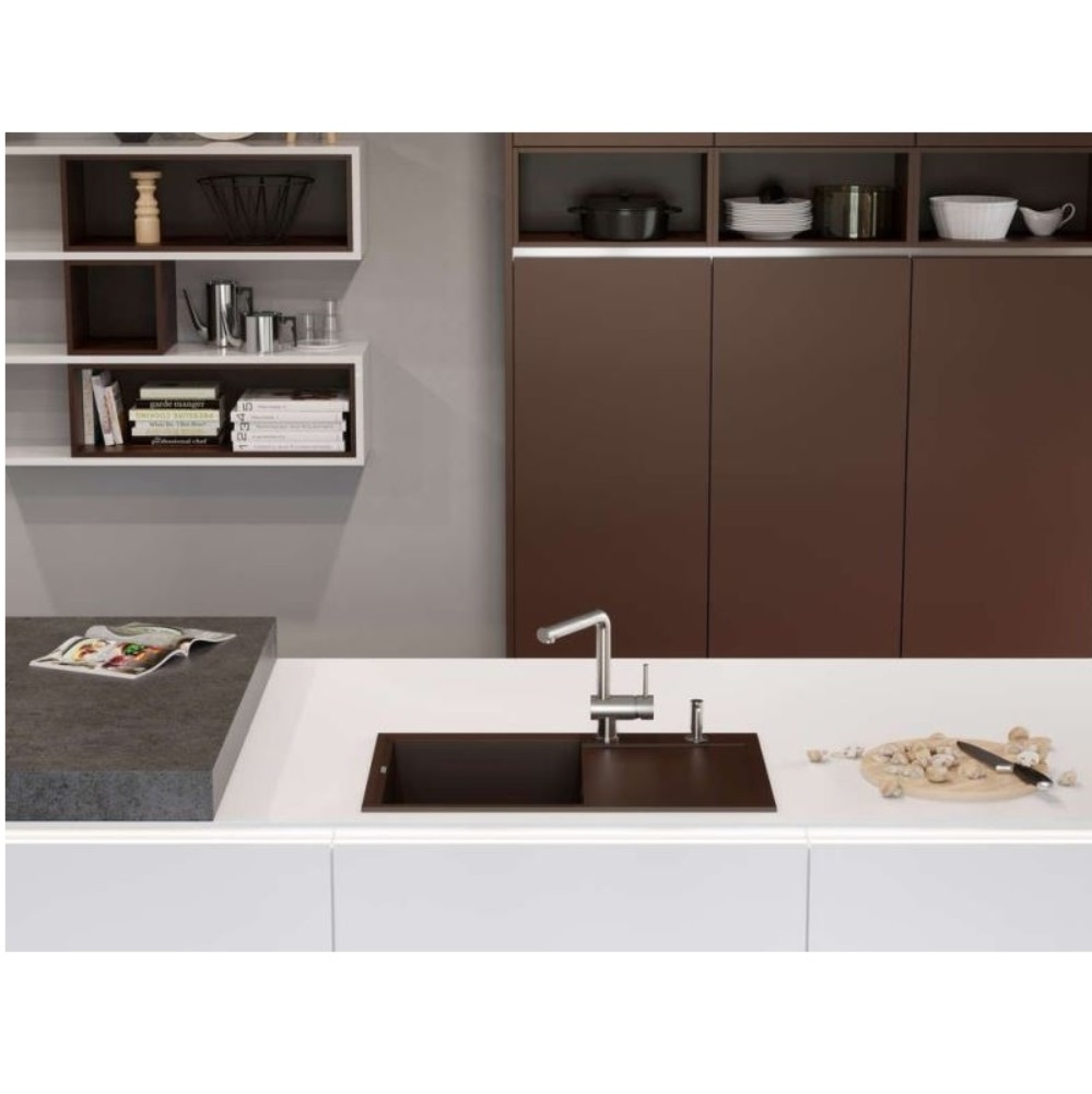 Мойка кухонная Omoikiri из коллекции Sakaime 79-GR имеет размеры 790х500 мм., изготовлена из искусственного гранита. Форма — прямоугольная, одна чаша без отверстия для смесителя. Сифон в комплекте. Ширина чаши 39. Врезной монтаж. Имеется крыло.