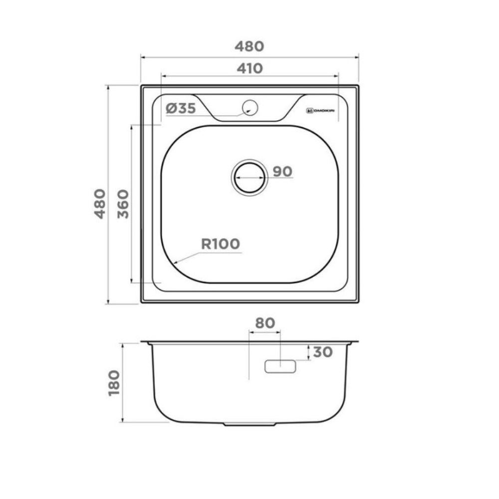 Мойка кухонная Omoikiri из коллекции Saru 48-IN имеет размеры 480х480 мм., изготовлена из нержавеющей стали. Форма — квадратная, одна чаша с отверстием для смесителя. Сифон в комплекте. Ширина чаши 41. Врезной монтаж
