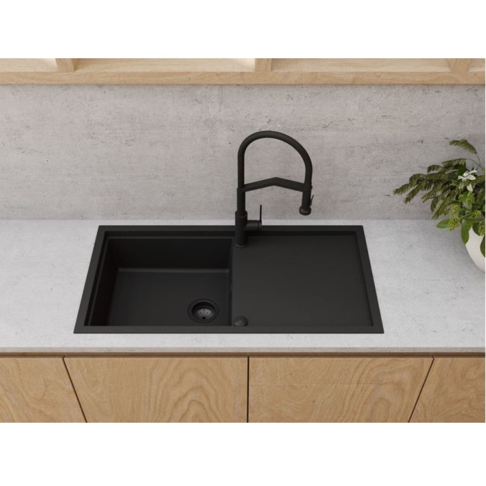 Мойка кухонная Omoikiri из коллекции Sintesi 100-CN имеет размеры 1000х500 мм., изготовлена из искусственной керамики. Форма — прямоугольная, одна чаша без отверстия для смесителя. Сифон в комплекте. Ширина чаши 47. Врезной монтаж. Имеется крыло.