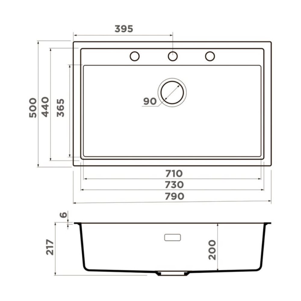 Мойка кухонная Omoikiri из коллекции Sintesi 79-CN имеет размеры 790х500 мм., изготовлена из искусственной керамики. Форма — прямоугольная, одна чаша без отверстия для смесителя. Сифон в комплекте. Ширина чаши 71. Врезной монтаж