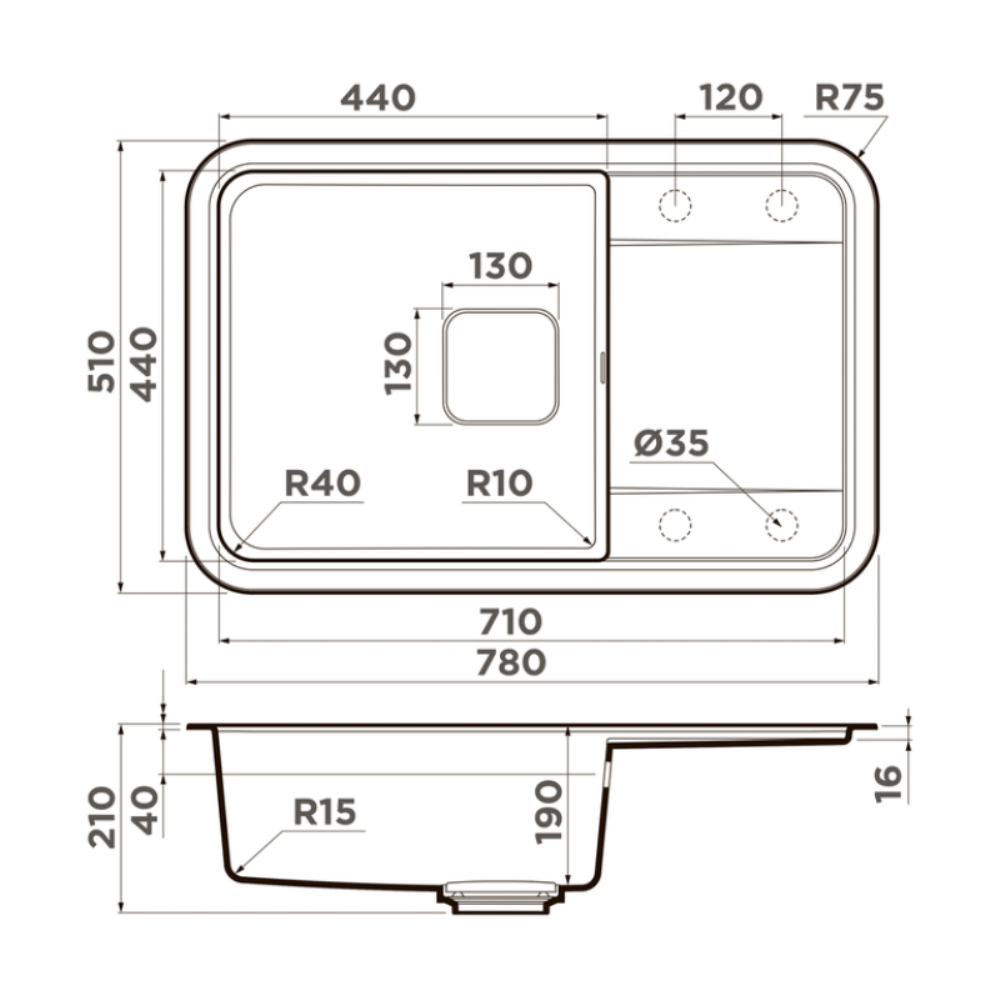 Мойка кухонная Omoikiri из коллекции Tasogare 78-DC имеет размеры 780х510 мм., изготовлена из искусственного гранита. Форма — прямоугольная, одна чаша без отверстия для смесителя. Сифон в комплекте. Ширина чаши 44. Врезной монтаж. Имеется крыло.