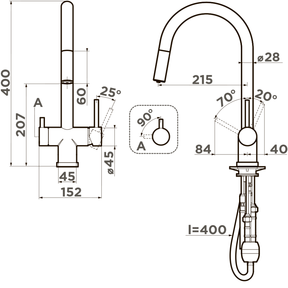 | Тип изделия | Смеситель для кухни с выдвижным изливом |