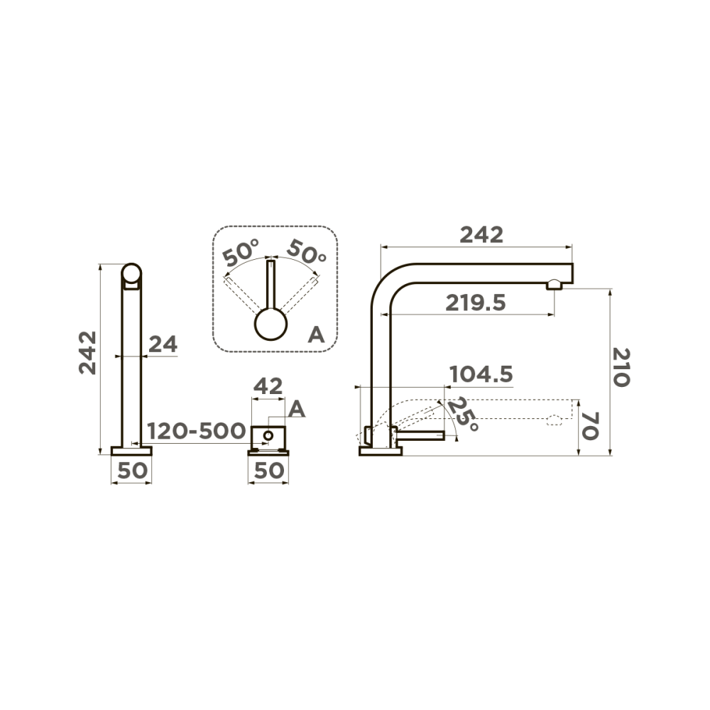 Смеситель для кухни Omoikiri Nara оснащен рычажным управлением для регулировки температуры и напора воды. Горизонтальный монтаж на 2 отверстия. Поворотный излив 220 мм.