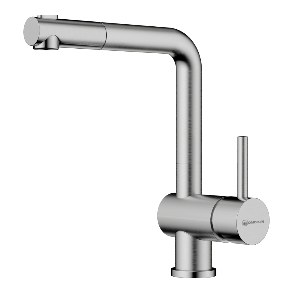 Смеситель для кухни Omoikiri Tanigawa оснащен рычажным управлением для регулировки температуры и напора воды. Горизонтальный монтаж на 1 отверстие. Вытяжной излив 191 мм.