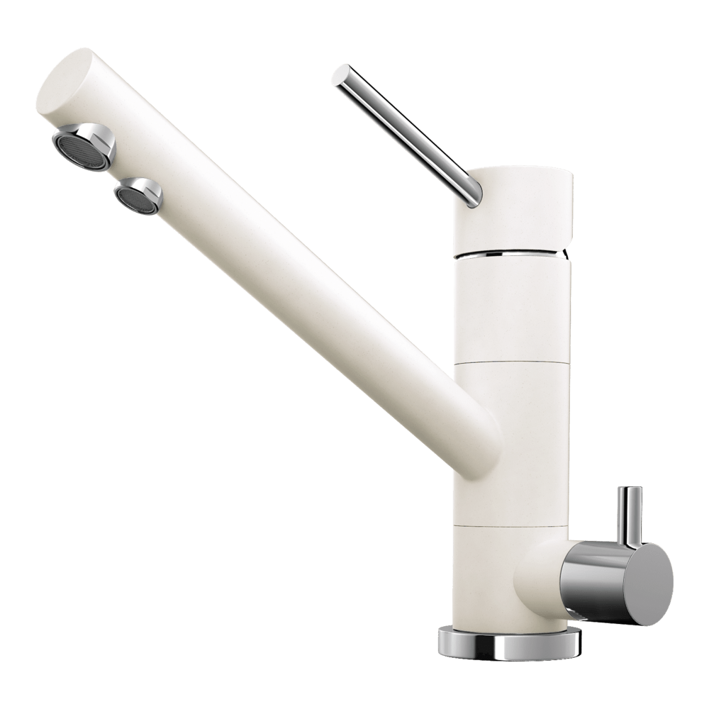 Смеситель для кухни Omoikiri Tonami с подключением фильтра оснащен рычажным управлением для регулировки температуры и напора воды. Горизонтальный монтаж на 1 отверстие. Поворотный излив 184 мм.