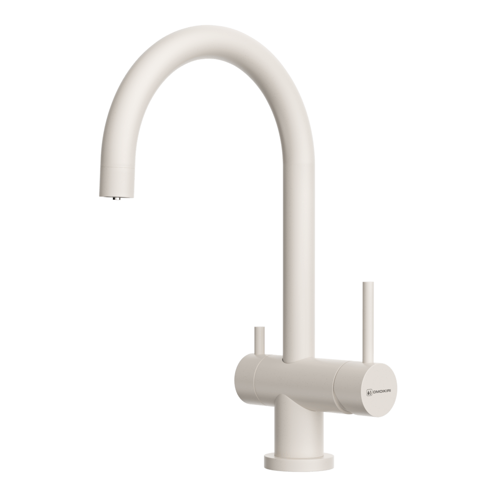 Смеситель для кухни Omoikiri Yamada-P с подключением фильтра оснащен рычажным управлением для регулировки температуры и напора воды. Горизонтальный монтаж на 1 отверстие. Поворотный излив 204 мм.